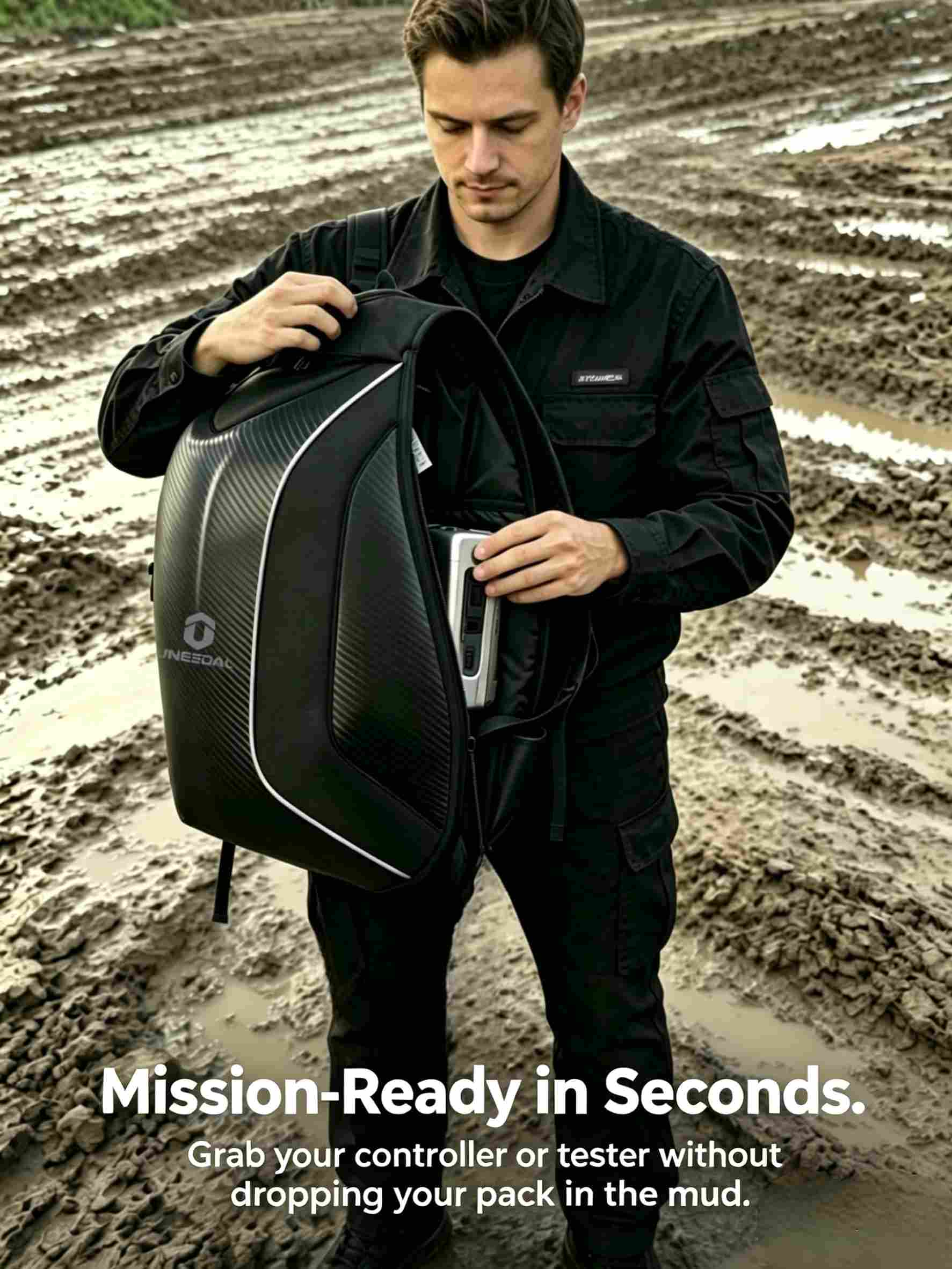The Field Tech 3321 is the pinnacle of our Gear Pack series. Designed for drone pilots, satellite technicians, and field engineers who operate in high-stakes environments, the 3321 fuses a premium-grade aerodynamic shell with a dual-access modular interior.