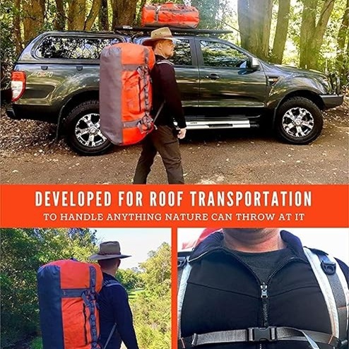 2. Our large duffel bag handles heavy rain, snow, sand, mud, dust & brief submersion. No stitching penetrates inside to make fully waterproof dry bag.